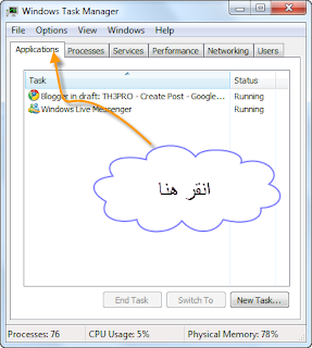ctrl +alt +del بعد ضهور الشاشة السوداء إضغط على